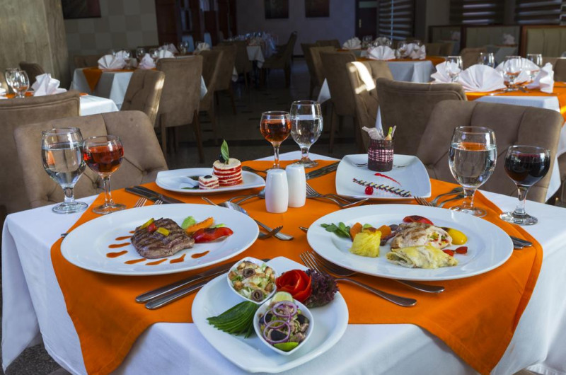 La Aqua Blu Resort oaspeții au la dispoziție 5 restaurante unde pot savura mâncăruri delicioase, în stil bufet sau à la carte. Preparate din bucătăria internațională, mediteraneeană și italiană propun mâncăruri pentru gusturi diverse.. Masa poate fi servită atât în interior, cît si în aer liber, pe terasă, în funcție de vreme. Oaspeţii pot avea diverse băuturi răcoritoare sau alcoolice la bar. De asemenea , în cadrul proprietății, există cafenea și snack bar ideale pentru o gustare rapidă. Pentru cei cu anumite nevoi de nutriție, Aqua Blu Resort oferă meniuri pentru diete speciale.