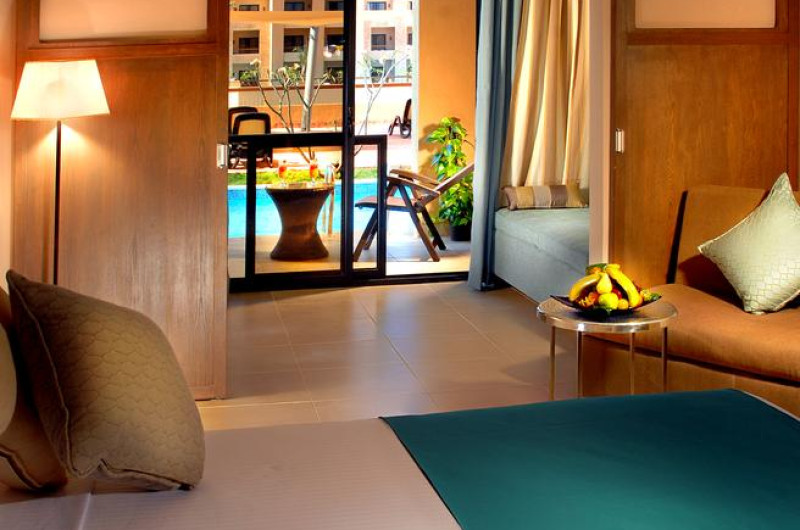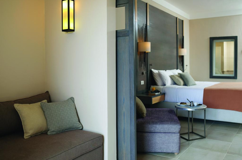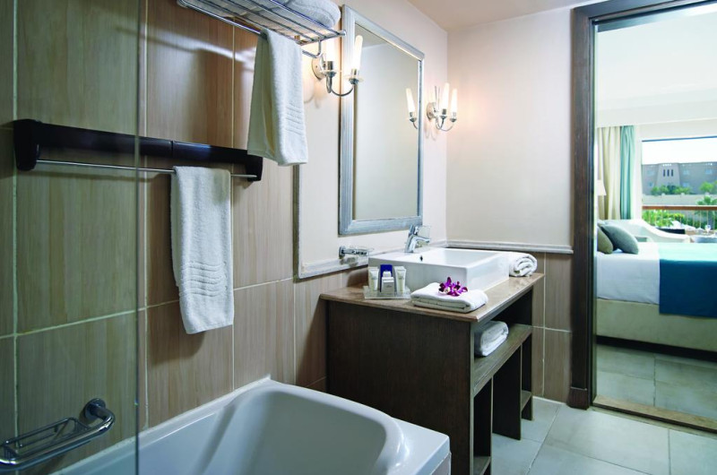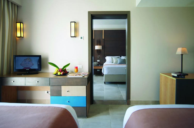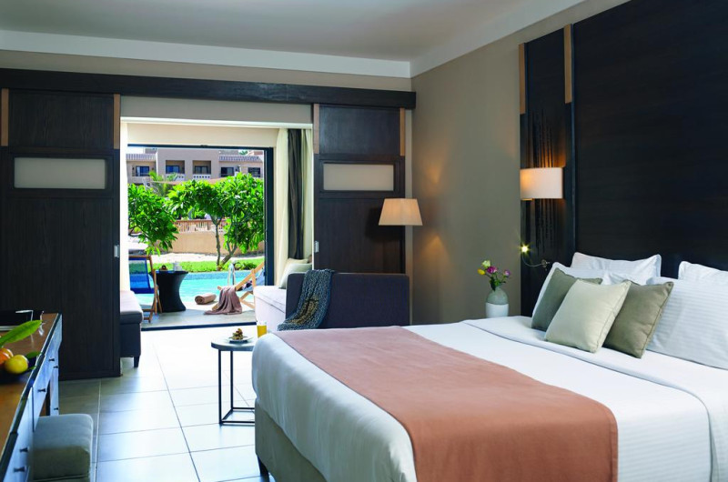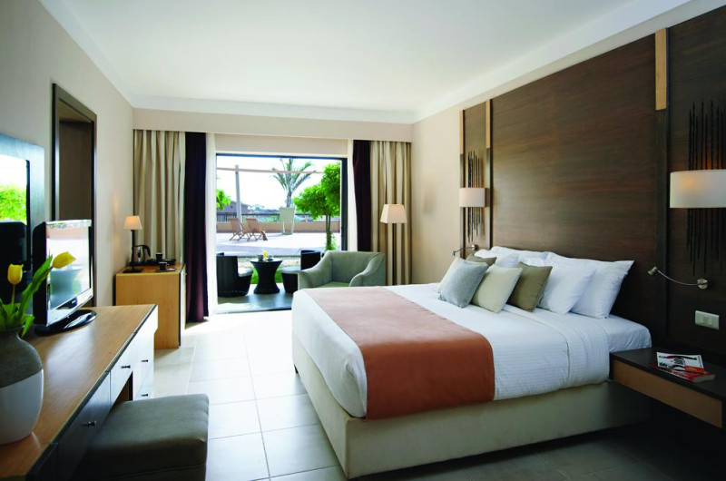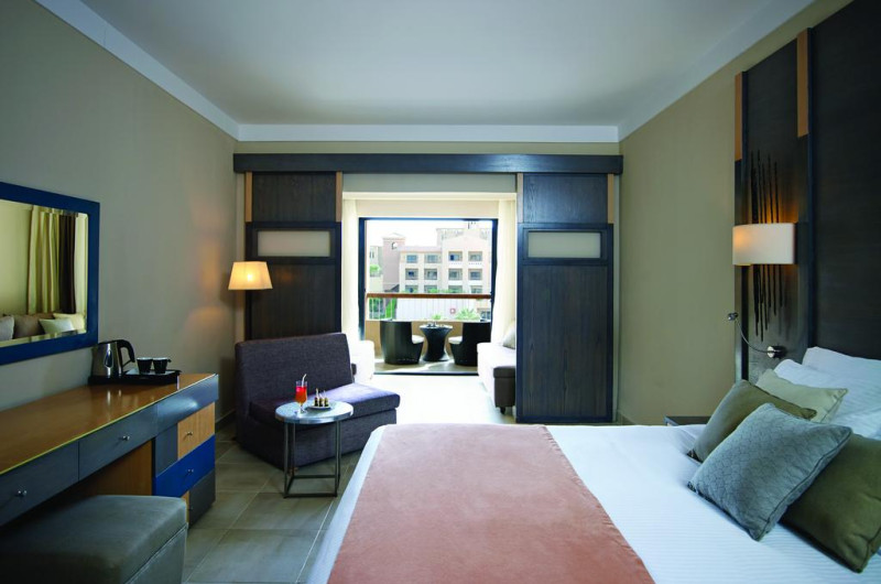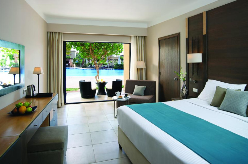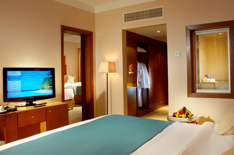Unele camere au vedere la grădină sau la piscină. În camere există baie cu cadă sau duș ce are în dotare foehn și articole de toaletă gratuite. Camerele confortabile de la Coral Sea Aqua Club Resort au pardoseală de gresie/ marmură, aer condiționat, Tv cu canale prin satelit și seif. Fiecare cameră dispune de minibar și cană-fierbător. Oaspeții pot solicita serviciul de room service pentru a servi masa sau diverse băuturi. Oaspeții au acces la serviciul Wi-fi în camere contra cost. Curățenia in cameră se face zilnic. Toate camerele spațioase de la Coral Sea Aqua Club Resort au zonă de relaxare cu canapea, ceea ce oferă un plus de confort. Proprietatea oferă camere pentru familie cu o suprafață mai mare și un număr mai mare de paturi față de cele standard. Se pot rezerva de asemenea camere pentru nefumători.