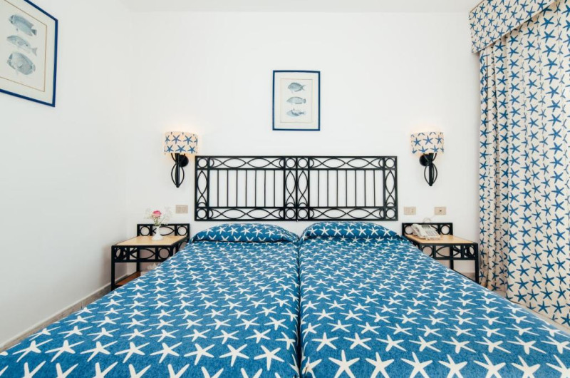 Sunt disponibile 442 camere. Camerele luminoase de la Domina Coral Bay Aquamarine sunt dotate cu aer condiționat și Tv cu canale prin satelit. Fiecare cameră dispune de minibar. Oaspeții pot solicita serviciul de room service pentru a servi masa sau diverse băuturi. Unele camere au balcon cu vedere la mare sau la piscină. În camere există baie cu cadă sau duș ce are în dotare foehn și articole de toaletă gratuite. Oaspeții au acces gratuit la serviciul Wi-fi în camere. Curățenia in cameră se face zilnic.