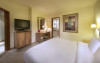 Camerele confortabile de la Hilton Sharks Bay Resort au pardoseală de gresie/ marmură, aer condiționat, Tv cu canale prin satelit și seif. Unele camere au balcon cu vedere la mare sau la piscină. Fiecare cameră dispune de minibar și cană-fierbător. Oaspeții pot solicita serviciul de room service pentru a servi masa sau diverse băuturi. În camere există baie cu cadă sau duș ce are în dotare foehn și articole de toaletă gratuite. Curățenia in cameră se face zilnic. Toate camerele spațioase de la Hilton Sharks Bay Resort au zonă de relaxare cu canapea, ceea ce oferă un plus de confort. Fiecare unitate de cazare are frigider. Proprietatea oferă camere pentru familie cu o suprafață mai mare și un număr mai mare de paturi față de cele standard. Se pot rezerva de asemenea camere pentru nefumători.