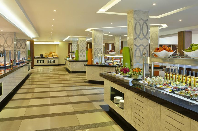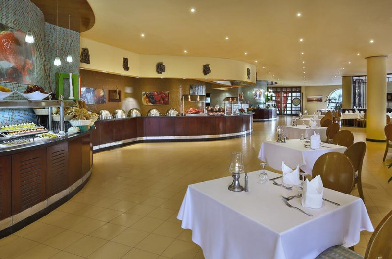 Hilton Sharks Bay Resort pune la dispoziția oaspeților un restaurant. Preparate din bucătăria locală și italiană așteaptă să fie degustate în fiecare zi. Masa poate fi servită atât în interior, cît si în aer liber, pe terasă, în funcție de vreme. Oaspeţii pot avea diverse băuturi răcoritoare sau alcoolice la bar. În cadrul proprietății există și un snack bar care servește băuturi și gustări. Pentru cei cu anumite nevoi de nutriție, Hilton Sharks Bay Resort oferă meniuri pentru diete speciale.