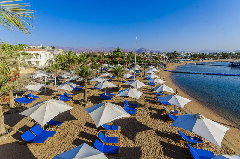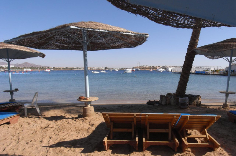 Marina Sharm Hotel are în apropiere o plajă cu nisip. Pe plajă există șezlonguri și umbrele de plajă.