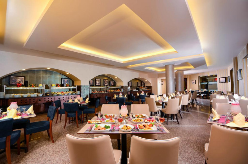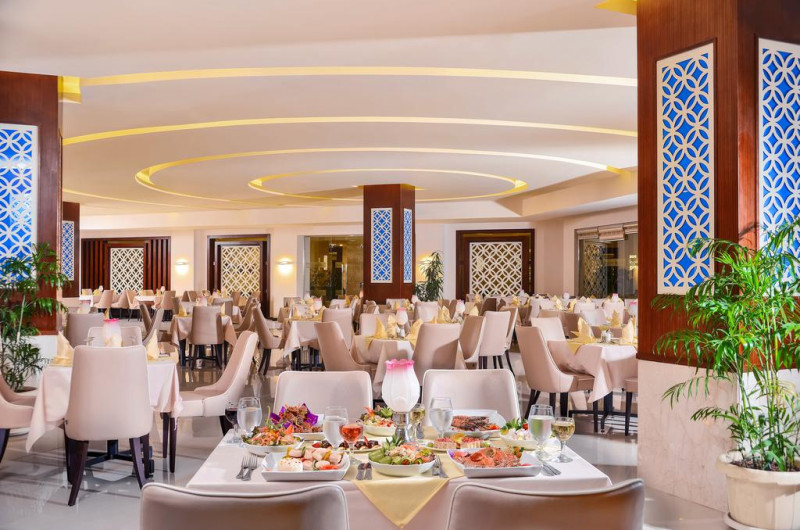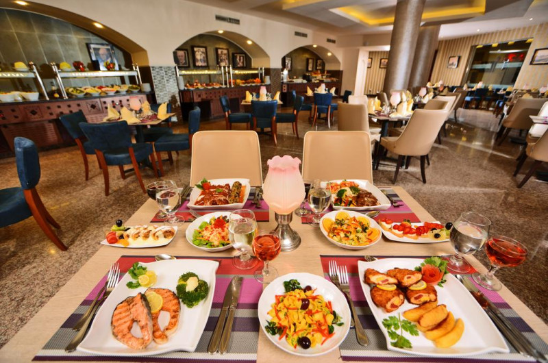 La Royal Albatros Moderna oaspeții au la dispoziție 7 restaurante unde pot savura mâncăruri delicioase, în stil bufet sau à la carte. Preparate din bucătăria internațională, mediteraneeană și italiană propun mâncăruri pentru gusturi diverse.. Masa poate fi servită atât în interior, cît si în aer liber, pe terasă, în funcție de vreme. Oaspeţii pot avea diverse băuturi răcoritoare sau alcoolice la bar.