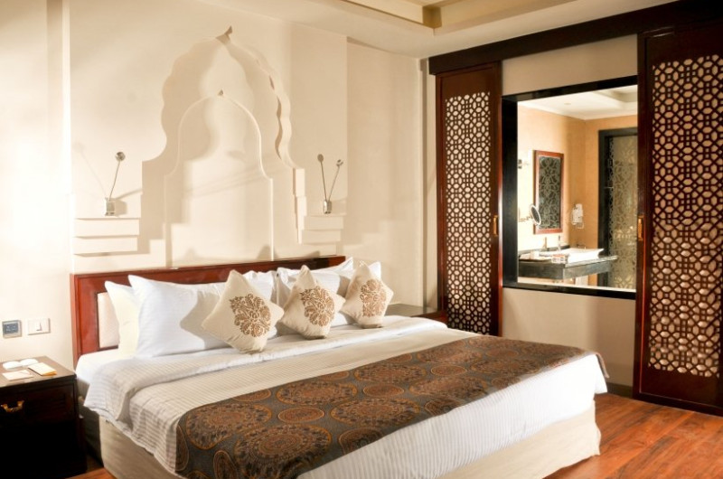 Dotari camere: 420 de camere decorate elegant in stil arab, fiecare fiind echipata cu AC, seif, TV LCD, internet Wi-Fi, cafetiera, minibar, uscator de par, articole de toaleta gratuite, halat si papuci, oglinda machiaj, balcon sau terasa. 171 Superior Room (43 mp); Deluxe Sea View Room (51 mp); Family Room (53 mp). Hotelul dispune si de camere pentru persoane cu dizabilitati (Superior Room), camere pentru nefumatori si connected room.
