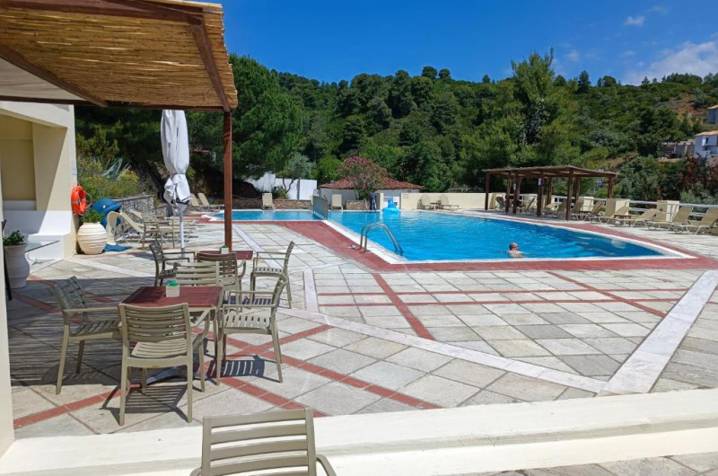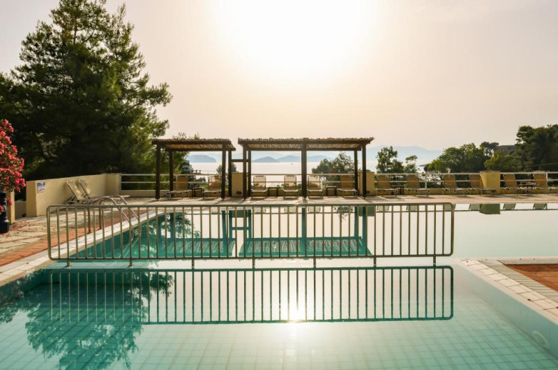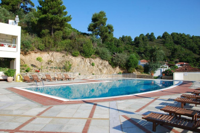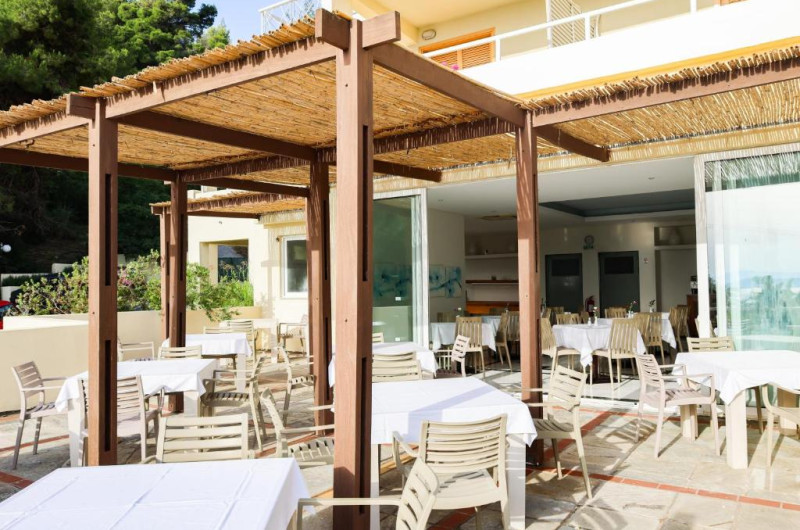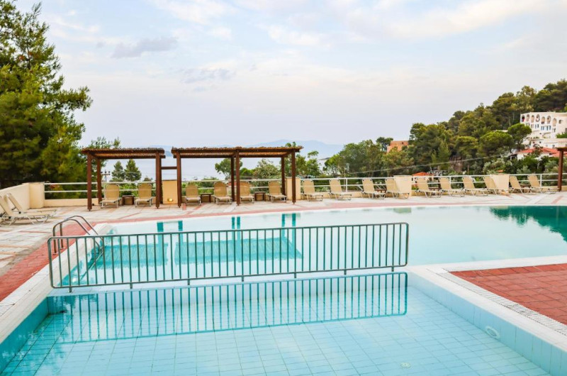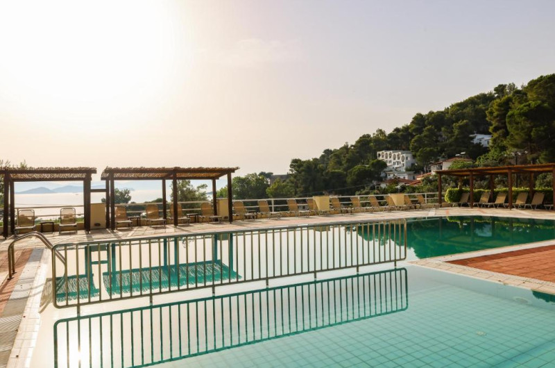 Administrat de o familie, acest hotel cu decor care reflectă culorile Mării Egee se află pe un deal de pe insula Skiathos, la numai cațiva pași de plajă.