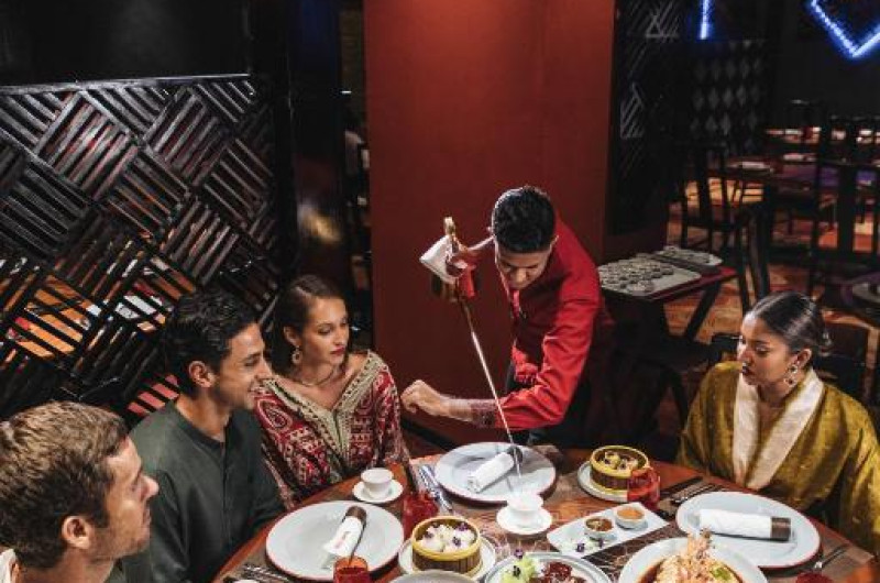 Oferă atat locuri in interior, cat și mese in aer liber pe malul lacului și Colom Bar. Alte restaurante includ opțiuni thailandeze și japoneze.
