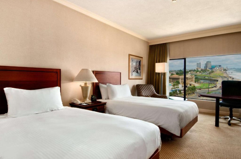 Oferind vedere pitorească de la ferestre supradimensionate, camerele spațioase de la Colombo Hilton oferă spațiu de lucru amplu și o canapea confortabilă. Acestea au o baie de marmură cu zone separate de duș și cadă.