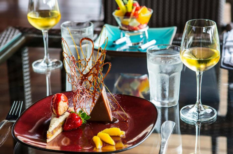 Restaurantul principal, care are o terasă deschisă cu vedere la plajă, serveste bufete internationale si preparate occidentale. Hotelul are o cafenea deschisă nonstop langă piscină si 2 baruri.