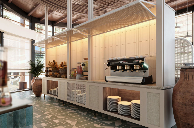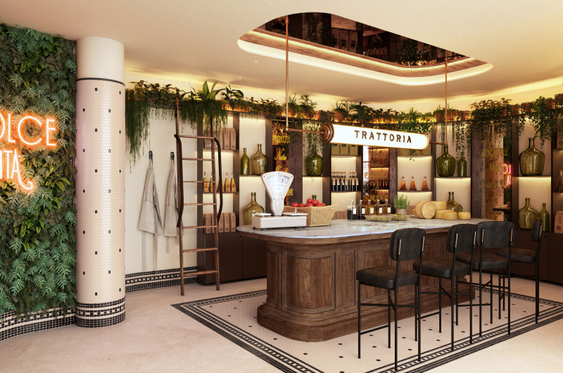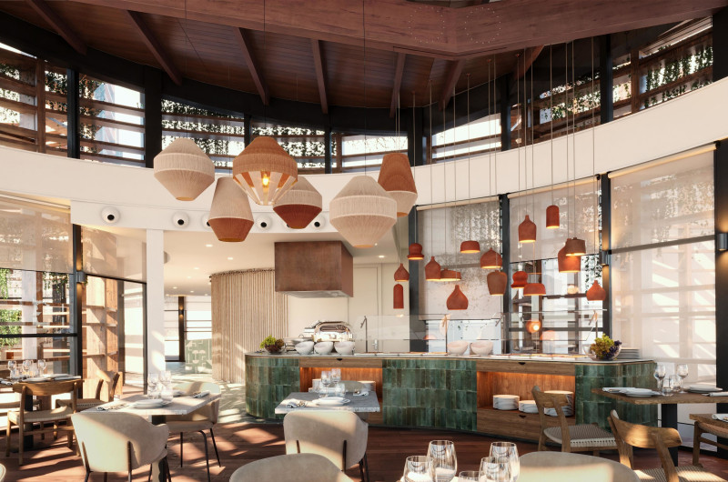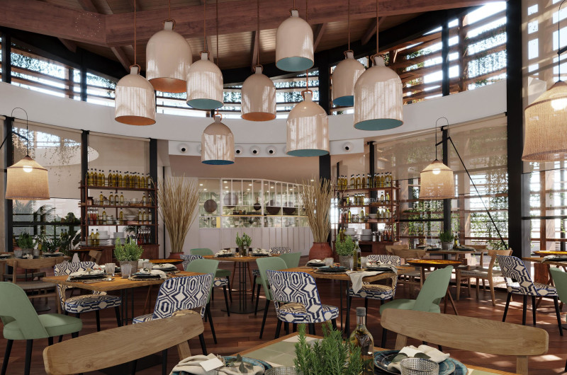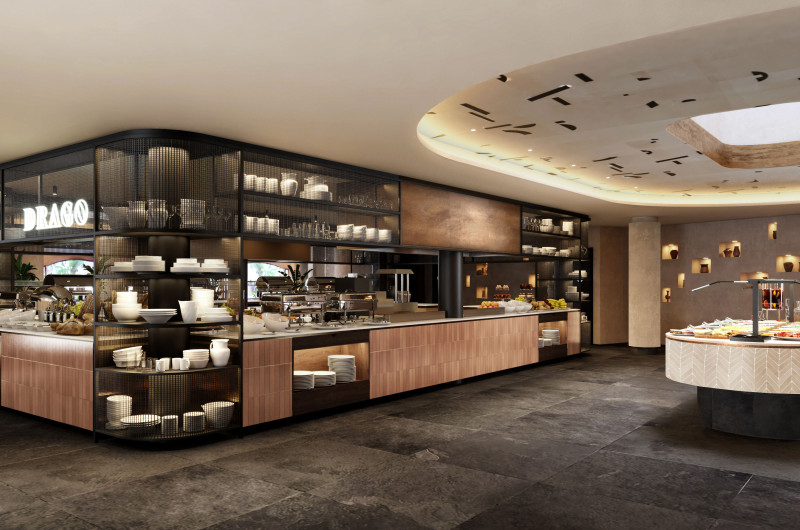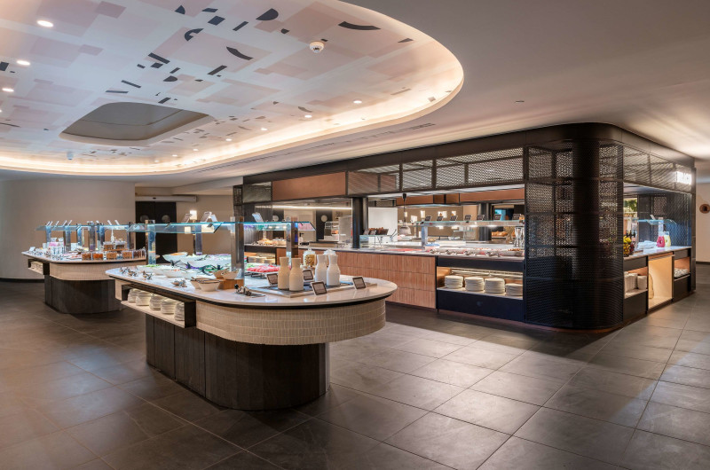 Zona cu restaurante cuprinde un bar. Clienții sunt răsfățați din punct de vedere culinar in unul din cele 6 restaurante (nefumători, bufet și à la carte). Un mic dejun, un pranz și o cină stau la dispoziție pentru toate poftele. Locul de cazare oferă un sortiment de băuturi alcoolice și nealcoolice.