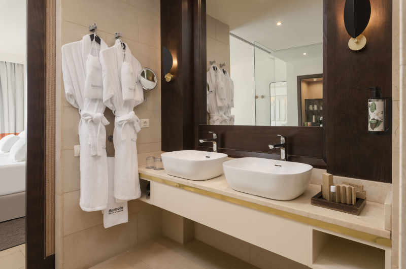 Aparatul de aer condiționat creează o atmosferă plăcută in camere. Balconul sau terasa sunt incluse in dotările de bază ale majorității camerelor. Un seif și, cu taxă, un minibar stau de asemenea la dispoziție. Echiparea de bază cuprinde de asemenea și un aparat pentru cafea/ceai. Telefonul, un televizor cu ecran plat și WiFi-ul (gratuit) oferă un concediu confortabil. Un sortiment de perne promite o stare de bine confortabilă. Băile dispun de un duș și de o cadă cu hidromasaj. Un uscător de păr, o oglindă de machiaj și halate de baie stau la dispoziție pentru folosința zilnică. In plus, clienții au la dispoziție articole de cosmetică in băi.