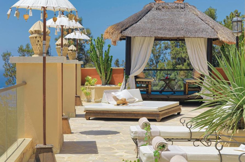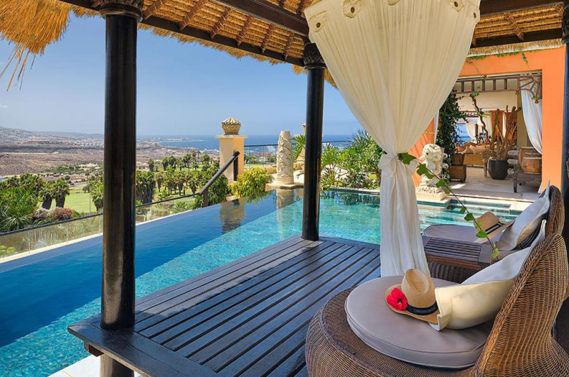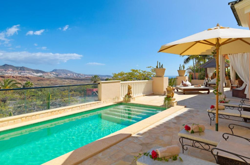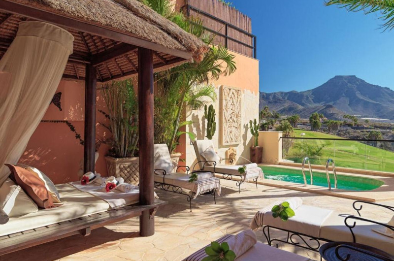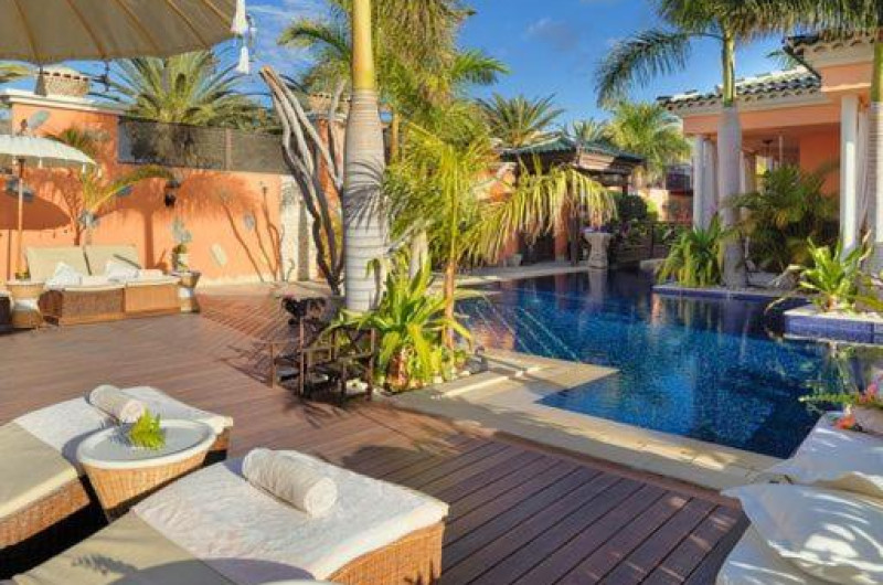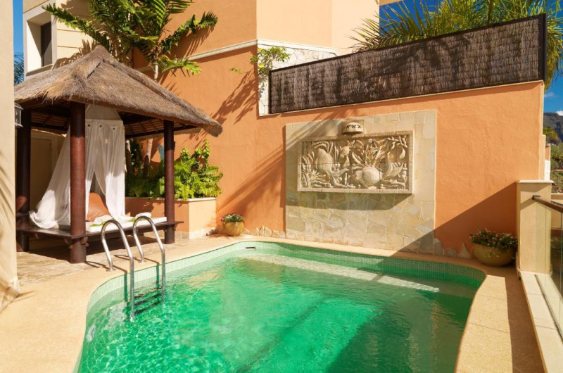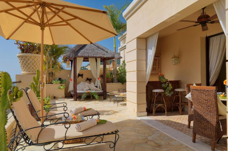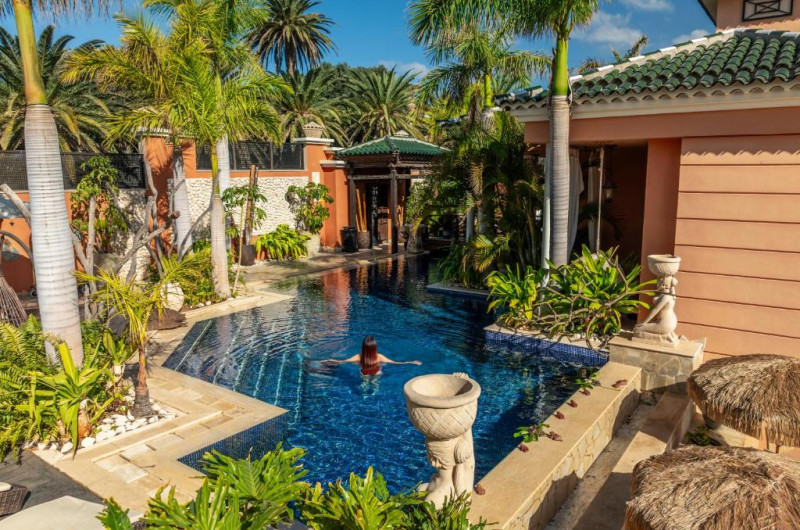 cest complex de 5 stele oferă vile de lux in stil balinez, cu piscine incălzite private. Complexul Royal Garden Villas este inconjurată de grădini si oferă o sală de fitness, un centru spa si vedere impresionantă la ocean. Toate unitățile de cazare sunt spațioase si decorate individual, fiecare avand un decor elegant si mobilier din lemn. Toate vilele au terasă, TV cu ecran plat de 40 inch, DVD player și o bucătărie bine utilată. Fiecare are un duș cu hidromasaj și cadă. Restaurantul Jardín al complexului Royal Garden oferă mancăruri à la carte și o selecție de preparate spaniole, intr-un cadru elegant, decorat cu zăbrele de lemn cu un model complex. Pub-ul Tucán Tucán serveste o varietate de cockteiluri si gustări ușoare. Centrul spa Golden Pond are un design in stil oriental si include o piscină interioară si băi turcești. De asemenea, oferă o cadă cu hidromasaj, o fantană de gheață si diverse tratamente de infrumusețare. Există, de asemenea, un teren de squash și o sală de fitness. Royal Garden vă poate facilita inchirierea unui iaht sau obținerea unei green fee pentru terenurile de golf din zonă. De asemenea, poate organiza diverse excursii, inclusiv pentru vizitarea orașului Puerto de la Cruz si a insulei La Gomera.