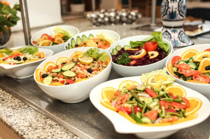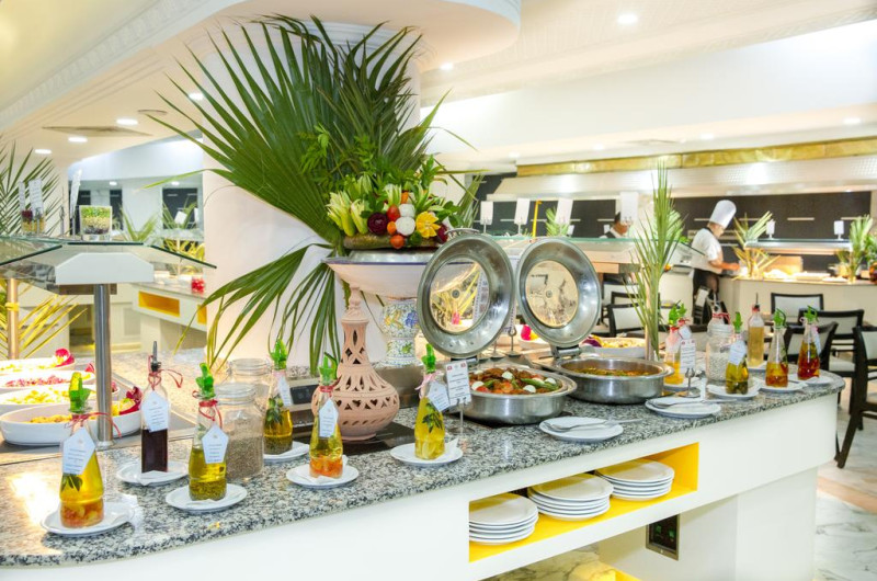 La Marhaba Royal Salem oaspeții au la dispoziție un restaurant care servește mâncare în stil bufet și à la carte. Preparate din bucătăria locală și internațională așteaptă să fie degustate în fiecare zi la micul dejun, prânz și cină. Masa poate fi servită atât în interior, cît si în aer liber, pe terasă, în funcție de vreme. 5 baruri, dintre care unul la piscină și unul pe plajă, sunt disponibile cu o ofertă variată de băuturi răcoritoare și alcoolice. În cadrul proprietății există și un snack bar care servește băuturi și gustări. Pentru cei cu anumite nevoi de nutriție, Marhaba Royal Salem oferă meniuri pentru diete speciale.