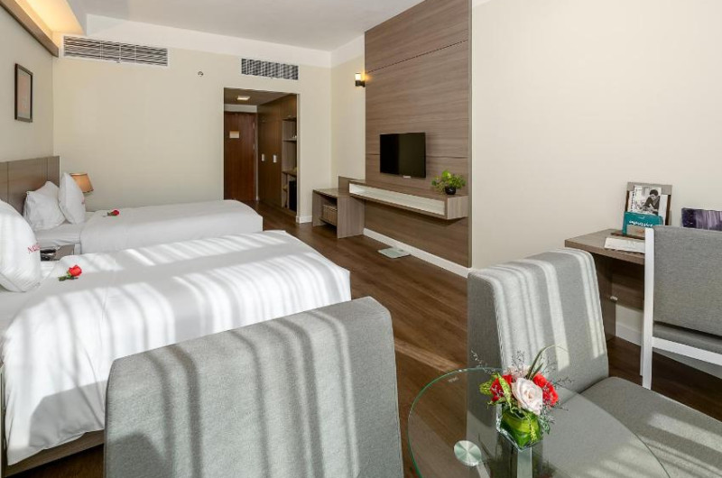 Fiecare cameră de la acest hotel este dotată cu aer condiționat și TV cu ecran plat cu canale prin cablu. Unele camere includ o zonă de relaxare in care vă puteți relaxa după o zi plină. Unele unități au vedere la mare sau la oraș. Camerele sunt dotate cu o baie privată cu duș sau cadă. Pentru confortul dumneavoastră, veți găsi halate de baie și papuci.