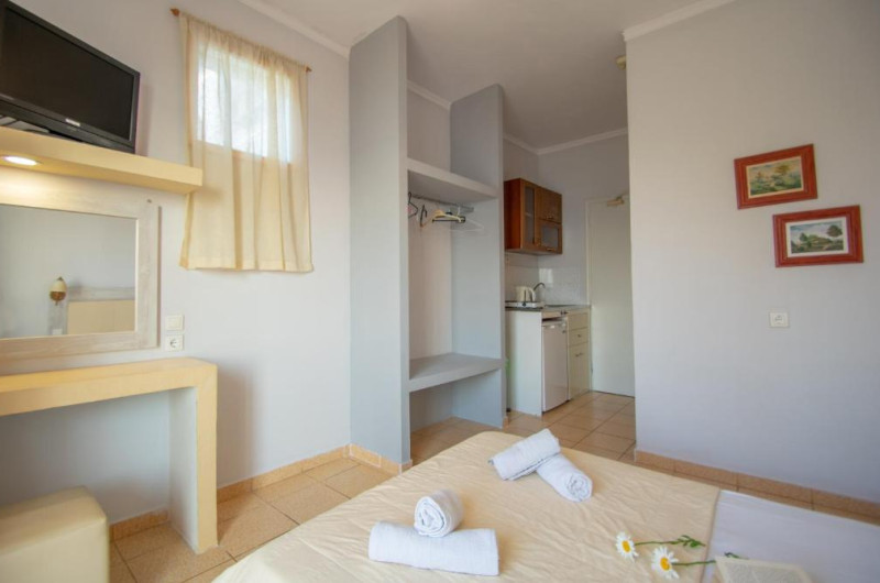 Aparatul de aer condiționat creează o atmosferă plăcută în camere. În majoritatea spațiilor de cazare clienții beneficiază de vedere spre mare de pe balcon sau de pe terasă. În chicinetă pot fi preparate mici gustări. Echiparea este completată de un telefon, un televizor și WiFi (contra cost). Băile dispun de un duș și de o cadă.