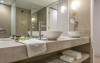 Camerele au balcon cu masă și scaune unde pot fi petrecute momente de relaxare. Fiecare cameră dispune de cană pentru prepararea apei calde. Oaspeții pot solicita serviciul de room service pentru a servi masa sau diverse băuturi. În camere există baie cu cadă sau duș prevăzută cu foehn. Camerele luminoase de la Aqua Bay sunt dotate cu aer condiționat și Tv cu canale prin satelit. Oaspeții au acces gratuit la serviciul Wi-fi în camere. Curățenia in cameră se face zilnic. Proprietatea oferă camere pentru familie cu o suprafață mai mare și un număr mai mare de paturi față de cele standard. Se pot rezerva de asemenea camere pentru nefumători.