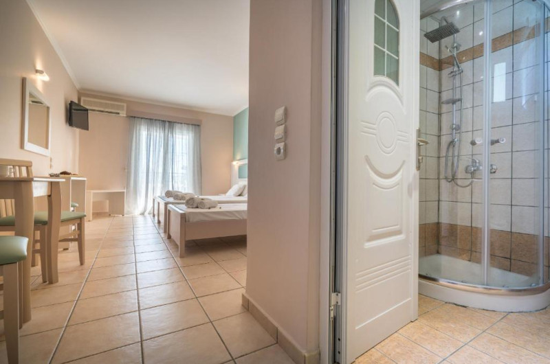 Camerele confortabile de la Zante Atlantis Hotel sunt dotate cu pardoseală de gresie/ marmură, aer condiționat, Tv și seif. Fiecare cameră dispune de un aparat pentru preparare cafea sau ceai, cană-fierbător și minibar. Oaspeții pot solicita serviciul de room service pentru a servi masa sau diverse băuturi. Unele camere au balcon cu vedere la piscină. În camere există baie cu duș ce are în dotare foehn și articole de toaletă gratuite. Curățenia in cameră se face zilnic. Proprietatea oferă camere pentru familie cu o suprafață mai mare și un număr mai mare de paturi față de cele standard.