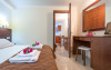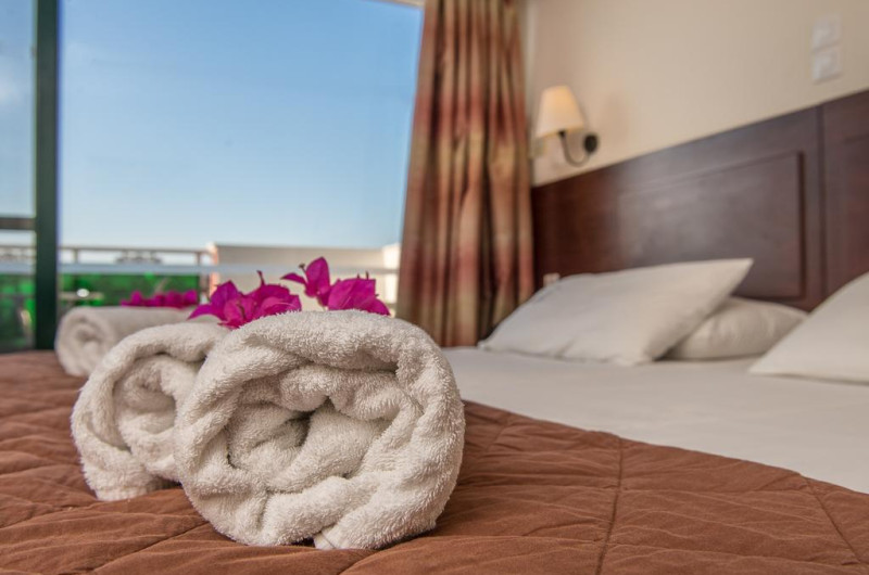 Sunt disponibile 175 camere. Unele camere au balcon cu vedere la grădină sau la piscină. Fiecare cameră dispune de cană-fierbător. În camere există baie cu cadă sau duș prevăzută cu foehn. Camerele confortabile de la Caretta Beach sunt dotate cu pardoseală de gresie/ marmură, aer condiționat, Tv și seif. Oaspeții au acces la serviciul Wi-fi în camere contra cost. Curățenia in cameră se face zilnic. Toate camerele spațioase de la Caretta Beach au canapea în living, ceea ce oferă un plus de confort. Fiecare unitate de cazare are frigider. Proprietatea oferă camere pentru familie cu o suprafață mai mare și un număr mai mare de paturi față de cele standard.