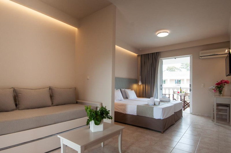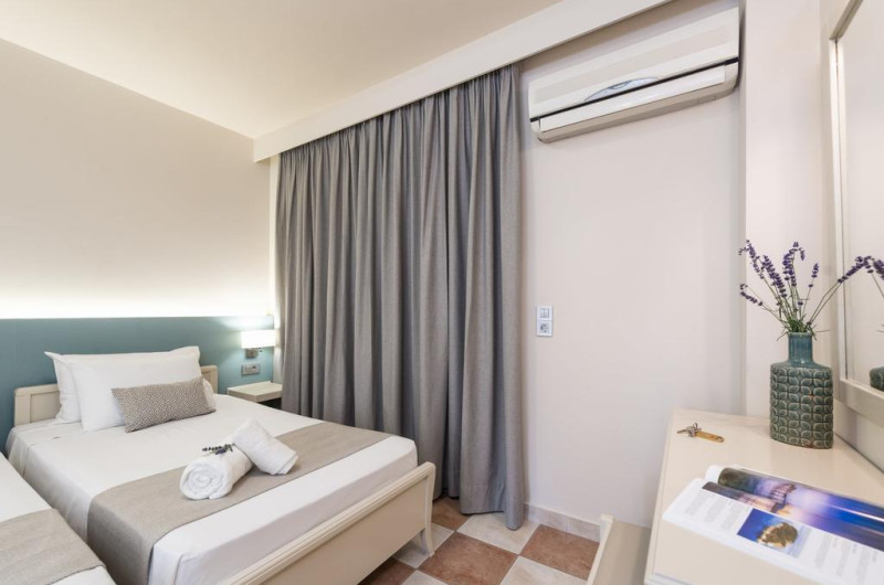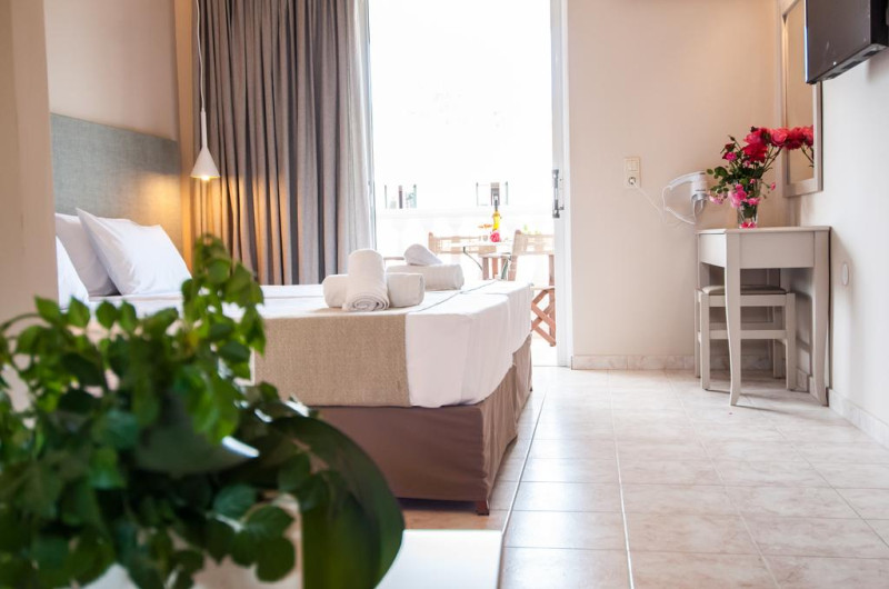 Unele camere au balcon, cu vedere la grădină, unde oaspeții se pot relaxa în compania celor dragi. Camerele confortabile de la Ilios Aparthotel au pardoseală de gresie/ marmură, aer condiționat, Tv cu canale prin satelit și seif. În camere există baie cu cadă sau duș prevăzută cu foehn. Fiecare cameră dispune de minibar și cană pentru preparare apă caldă. Oaspeții au acces gratuit la serviciul Wi-fi în camere. Curățenia in cameră se face zilnic. Anumite camere au cadă cu hidromasaj care asigură un plus de confort și răsfăț. Fiecare unitate de cazare are o bucătărie utilată cu frigider. Proprietatea oferă camere pentru familie cu o suprafață mai mare și un număr mai mare de paturi față de cele standard. Se pot rezerva de asemenea camere pentru nefumători.