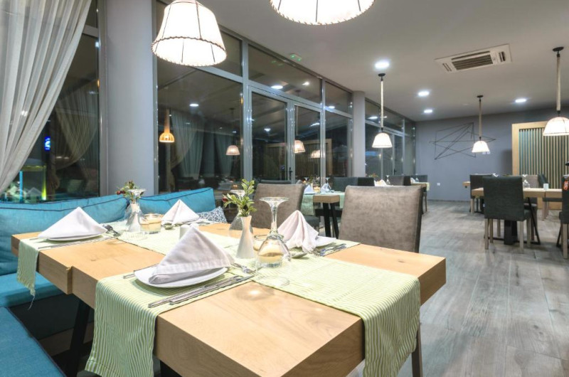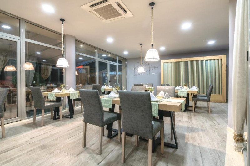 La Karras Grande Resort oaspeții au la dispoziție 2 restaurante unde pot savura mâncăruri delicioase, în stil bufet sau à la carte. Preparate din bucătăria internațională, grecească și mediteraneană așteaptă să fie degustate în fiecare zi la micul dejun, prânz și cină. Masa poate fi servită atât în interior, cît si în aer liber, pe terasă, în funcție de vreme. 2 baruri, dintre care unul la piscină, sunt disponibile cu o ofertă variată de băuturi răcoritoare și alcoolice.
