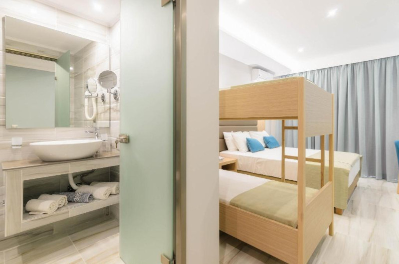 Camerele de la Karras Grande Resort sunt dotate cu aer condiționat, Tv cu canale prin satelit și seif. Fiecare cameră dispune de cană pentru prepararea apei calde. Oaspeții pot solicita serviciul de room service pentru a servi masa sau diverse băuturi. În camere există baie cu cadă sau duș ce are în dotare foehn și articole de toaletă gratuite. Oaspeții au acces gratuit la serviciul Wi-fi în camere. Unele camere au balcon cu vedere la piscină. Curățenia in cameră se face zilnic. Proprietatea oferă camere pentru familie cu o suprafață mai mare și un număr mai mare de paturi față de cele standard.
