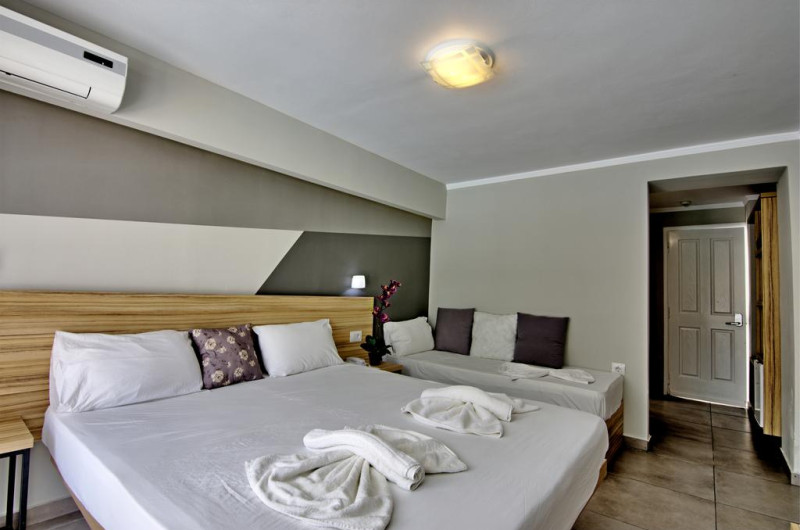 Sunt disponibile 62 camere. Fiecare cameră dispune de mașină pentru preparare cafea sau ceai și fierbător Unele camere au balcon, cu vedere la grădină, unde oaspeții se pot relaxa în compania celor dragi. Camerele confortabile de la Klelia Beach au pardoseală de gresie/ marmură, aer condiționat, Tv cu canale prin satelit și seif. În camere există baie cu cadă sau duș ce are în dotare foehn și articole de toaletă gratuite. Oaspeții au acces gratuit la serviciul Wi-fi în camere. Curățenia in cameră se face zilnic. Fiecare unitate de cazare are frigider. Proprietatea oferă camere pentru familie cu o suprafață mai mare și un număr mai mare de paturi față de cele standard.