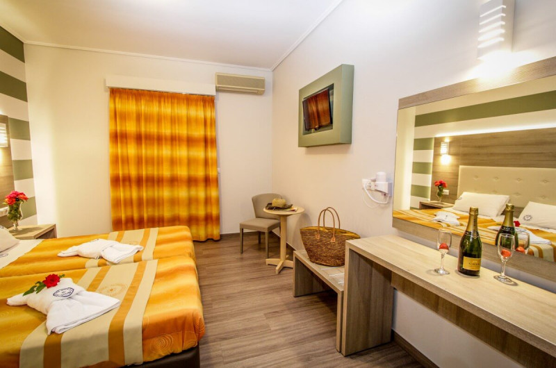 Localizare: situat in Kalamaki, la 700 m de centrul stațiunii, la 3 km de aeroport, la 4 km de orașul Zakynthos, și la doar 250 m de plaja cu nisip .