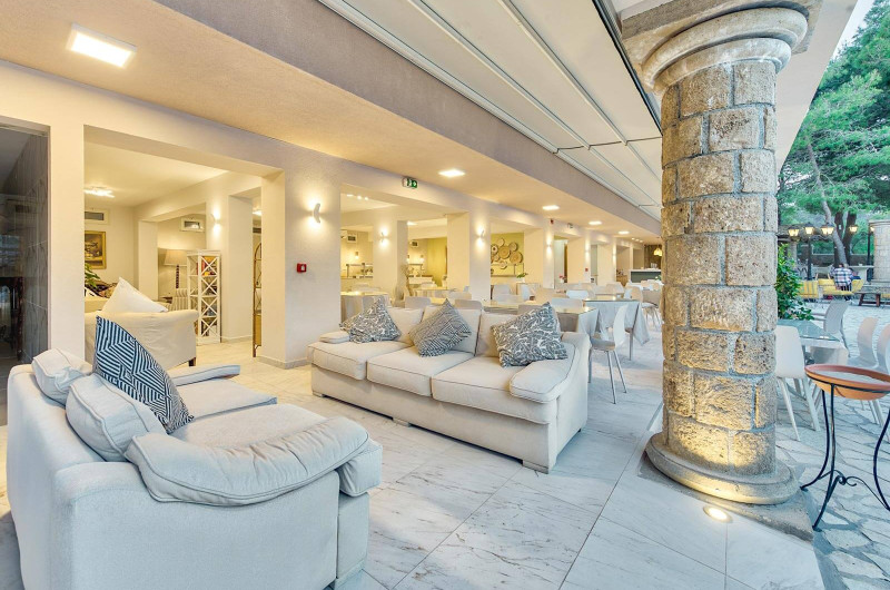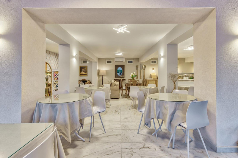 Restaurantul hotelului servește preparate din bucătăria grecească tradițională și internațională, iar barul de la piscină este locul ideal pentru răcoritoare și cocktailuri in timpul zilei. Grădina frumos amenajată cu vegetație mediteraneană creează o atmosferă liniștită, perfectă pentru vacanțe in stil grecesc.
