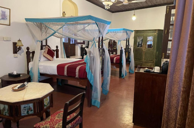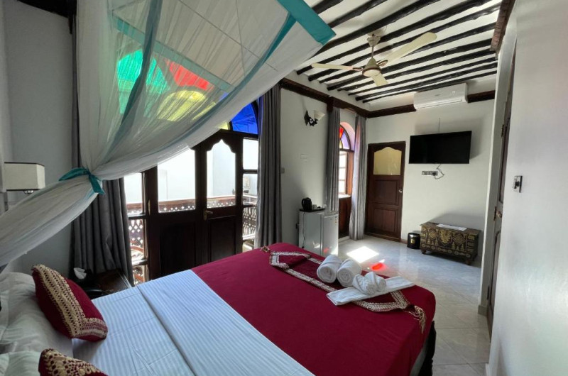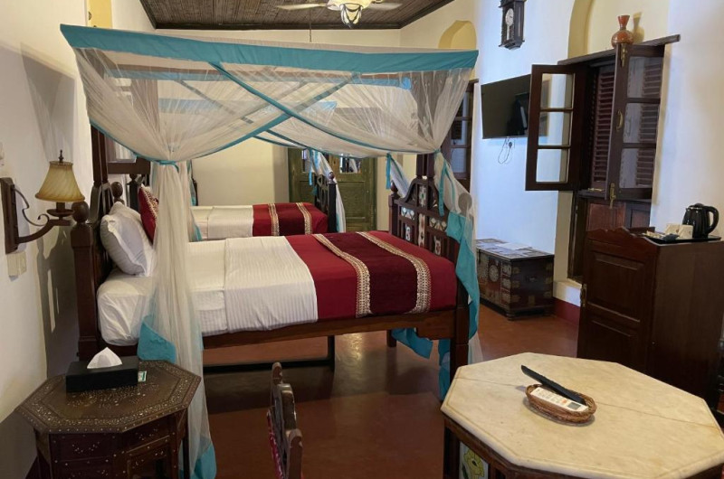 Fiecare cameră spațioasă are aer condiționat și mobilier si decor in stil Zanzibari. De asemenea, camerele sunt dotate cu TV prin satelit și fierbător electric. Băile private au uscător de păr.