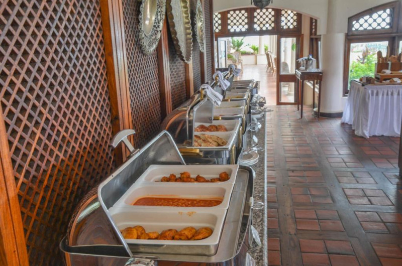 Restaurantul The Terrace Seafood oferă o terasă in aer liber, situată pe acoperiș, si are vedere la ocean. De asemenea, restaurantul Baharia serveste preparate swahili si internaționale. Mai mult, la barul si cafeneaua Pool Terrace oaspetii pot savura o gamă largă de băuturi, gustări și produse de patiserie tradiționale.