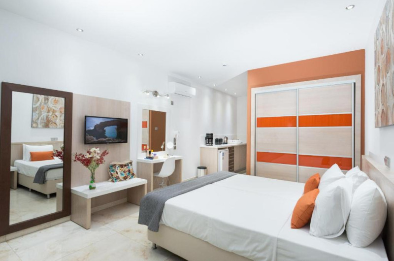 Apartamentele spațioase Loutsiana Deluxe sunt dotate cu aer condiționat și au balcon sau terasă mare și acces gratuit la internet WiFi. Unele unități includ o chicinetă utilată completă, iar toate apartamentele sunt bune cu fierbător electric, frigider și prăjitor de paine. In plus, unități au o zonă de relaxare cu TV LCD. La un cost suplimentar este disponibilă o cutie de valori.