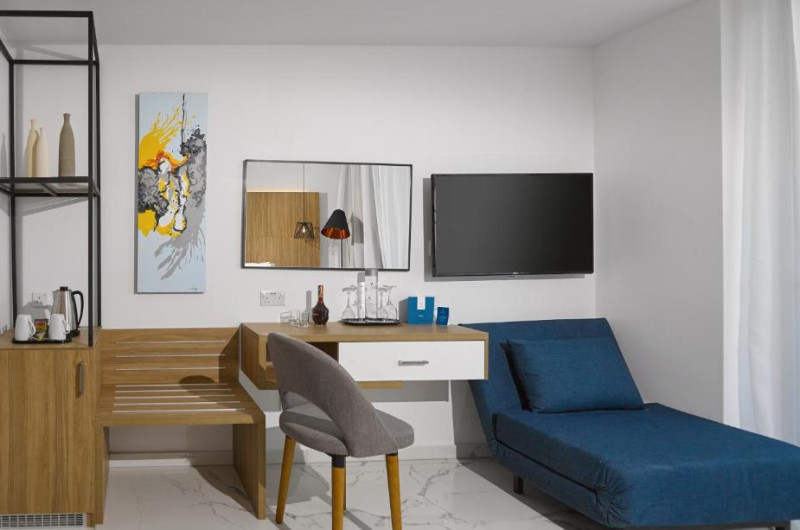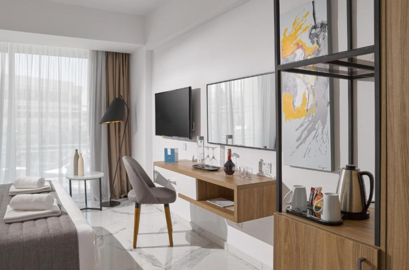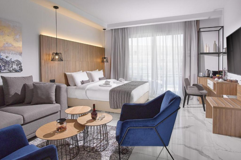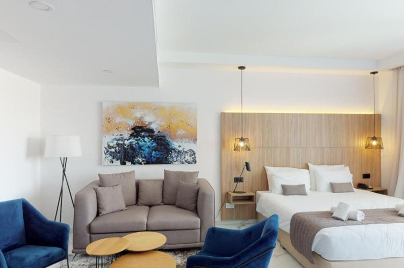 Oferind un centru de fitness și WiFi gratuit, The Blue Ivy Hotel & Suites este situat in Protaras, la 5 km de Parcul Național Forestier Kavo Gkreko și la 2 minute de mers pe jos de plaja Sunrise. La 2,2 km de plaja Kalamies, hotelul are o grădină și o terasă. Hotelul are două piscine in aer liber, una pentru copii și una pentru adulți.