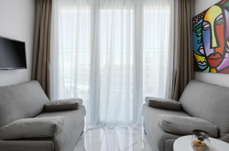 La hotel, fiecare cameră este dotată cu dulap și TV cu ecran plat. Fiecare cameră are o baie privată cu articole de toaletă gratuite, un balcon, iar unele au și vedere la mare. Toate camerele de la The Blue Ivy Hotel & Suites au zonă de relaxare.