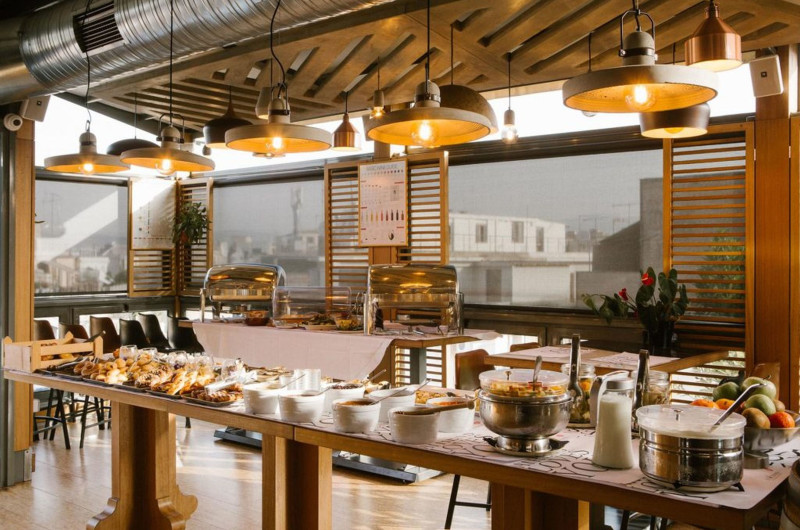 Există diverse locuri unde se poate lua masa: o sală de mese, o sală pentru micul dejun, o cafenea și un bar. Clienții sunt răsfățați din punct de vedere culinar in restaurantul pentru nefumători cu aer condiționat și o zonă separată pentru fumători. Hotelul oferă pentru masă pachete de servicii cu mic dejun inclus, demipensiune și pensiune completă. Zilnic se organizează un bufet divers la mic dejun, la pranz poate fi comandat un meniu fix. Sunt disponibile și mancăruri speciale, printre care feluri de mancare dietetice. Suplimentar sunt disponibile oferte speciale de masă și gustări.