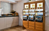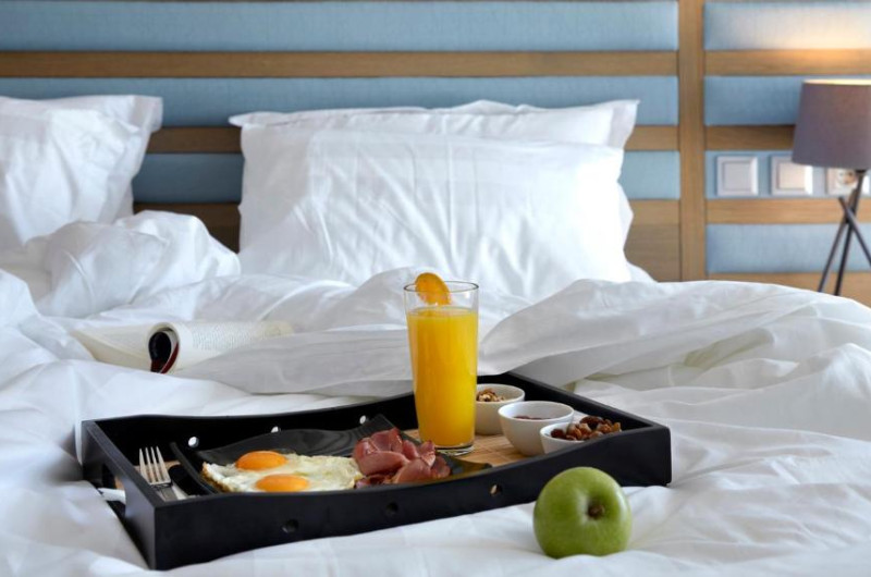 Există diverse locuri unde se poate lua masa: un restaurant cu aer condiționat, o sală de mese, o cafenea și un bar. La centrul de cazare se oferă spre rezervare demipensiune. Un bufet bogat la micul dejun, pranz și cină sunt delicioase și pregătite foarte diversificat. La cerere pot fi pregătite mese fără gluten și feluri de mancare vegetariene. De asemenea, unitatea de cazare pune la dispoziție gustări.