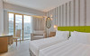 Aparatul de aer condiționat și sistemul de incălzire creează o atmosferă plăcută in camere. In majoritatea camerelor se găsește cate un balcon. Camerele cu mochetă dispun de un pat „Queen size”, de un pat „King size” sau de o canapea. De asemenea, pot fi puse la dispoziție pătuțuri pentru bebeluși și paturi suplimentare. De asemenea, sunt disponibile un seif, un minibar și un birou. Mai sunt disponibile și un minifrigider și un aparat pentru cafea/ceai. Un telefon cu apelare directă, un televizor cu canale prin satelit/cablu TV, radioul, combina muzicală și WiFi-ul oferă un concediu confortabil. In plus, clienții pot să apeleze la serviciul de curățenie finală. In cameră se găsesc și papuci de casă. In baia dotată cu duș și cadă, clienților le stau la dispoziție un uscător de păr și halate de baie. De asemenea, stau la dispoziție camere adaptate pentru scaun cu rotile cu baie fără bariere. Locul de cazare oferă camere pentru fumători.