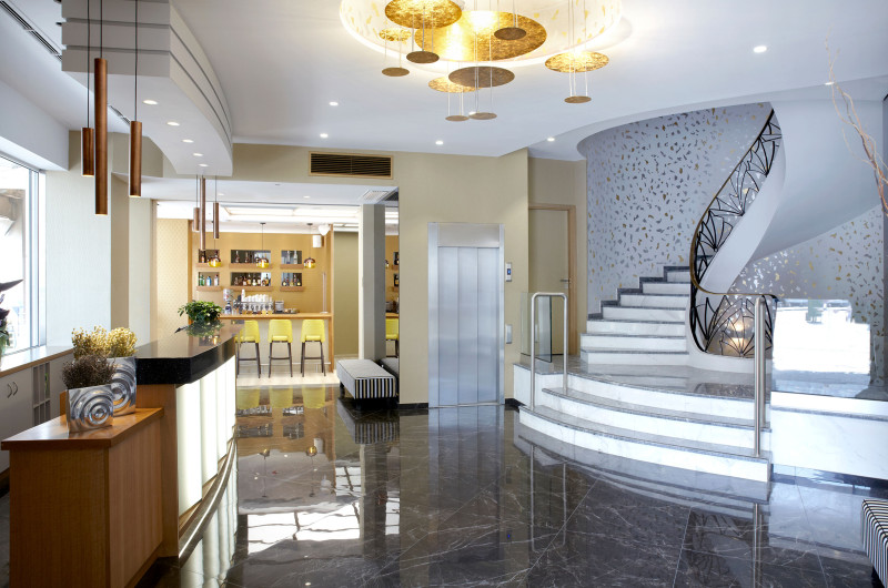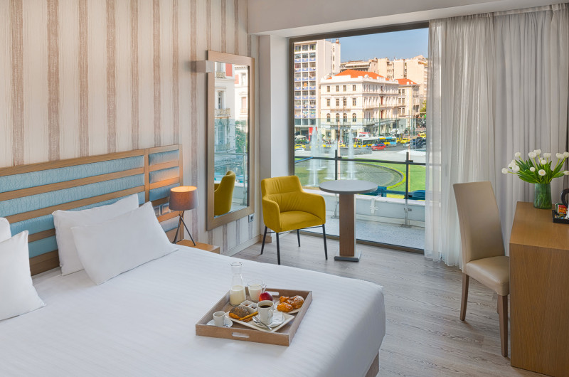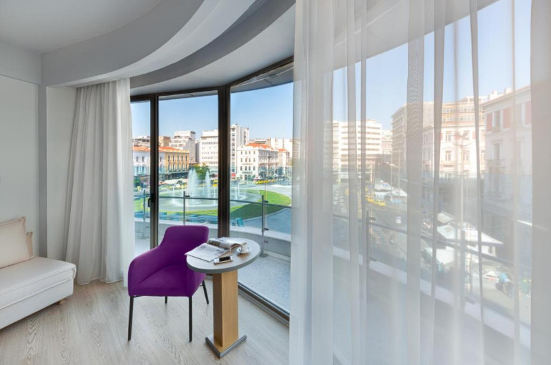 Acest hotel urban din categoria de primă clasă se află la cca 8 km de plajă, direct in centrul Atenei, intr-un cartier dinamic cu magazine și locuri de divertisment.