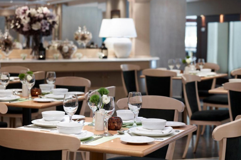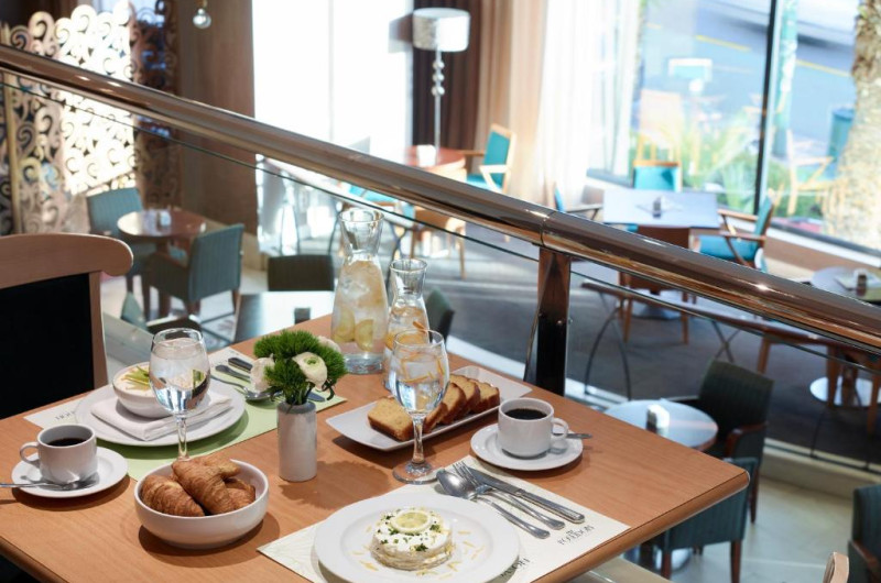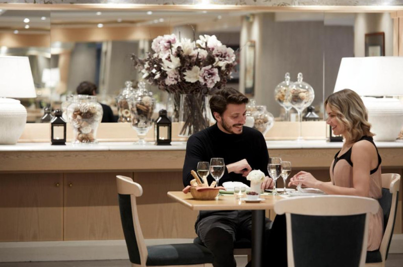 Restaurantul elegant Ellinikon servește mancăruri mediteraneene pregătite cu ingrediente proaspete, de calitate. Elegantul lounge bar Jason poate găzdui intalniri de afaceri sau de agrement. Oaspeții pot să savureze gustări, cocktail-uri și deserturi la patiseria hotelului.