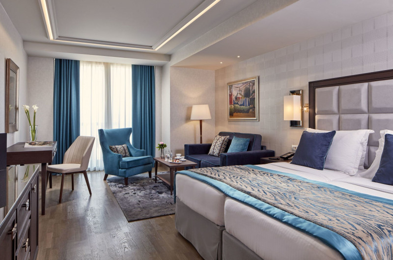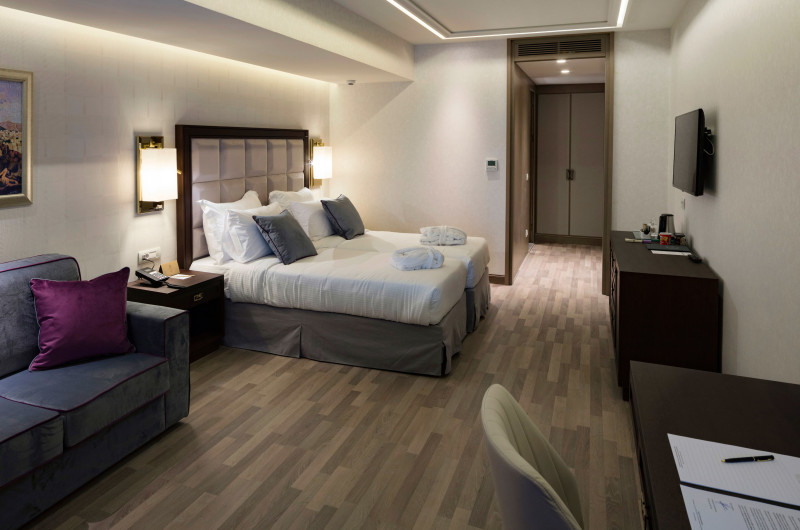 În camere există o bucătărie și o baie; aparatul de aer condiționat creează o atmosferă plăcută. Dotările standard din majoritatea camerelor includ un balcon. Camerele au un pat dublu sau o canapea. În plus, pentru cei mici sunt disponibile paturi pentru copii. În plus sunt disponibile un minibar și un birou și, contra unui supliment de preț, un seif. Echiparea de bază cuprinde de asemenea și un aparat pentru cafea/ceai. Clienții au parte de mai mult confort și datorită setului de călcat. În plus, există un telefon, un televizor cu ecran plat cu canale prin satelit și WiFi (gratuit). În cameră se găsesc și papuci de casă. Băile sunt dotate cu un duș, o cadă și o cadă cu hidromasaj. Un uscător de păr și halate de baie stau la dispoziție pentru folosința zilnică. Articolele de cosmetică creează un confort deosebit în băi. Mai stau la dispoziție și camere adaptate pentru scaun cu rotile, cu baie fără bariere.