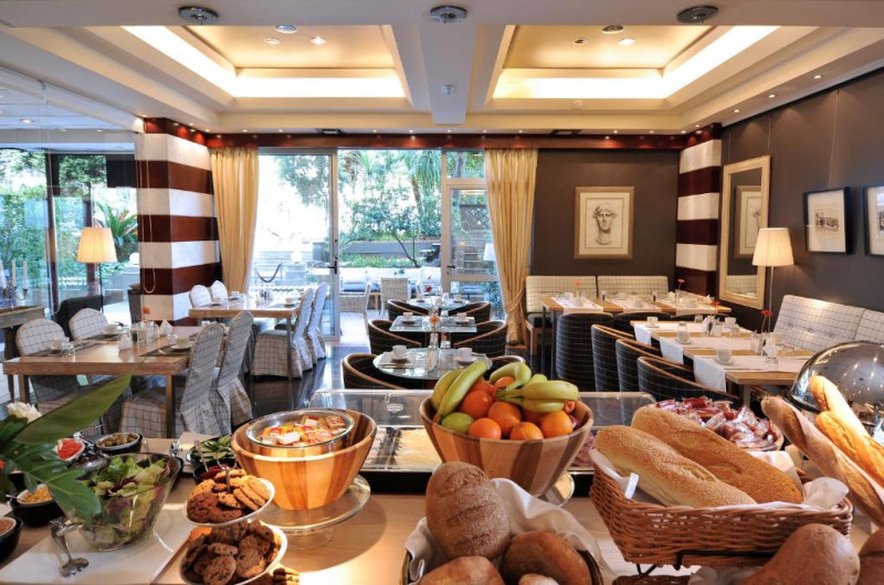 Oaspeții pot lua micul dejun tip bufet in restaurantul elegant, unde se pot savura, de asemenea, preparate grecești și internaționale, pregătite de bucătarul-șef. Sofisticatul café-bar de la Hotel Sea View este un loc ideal de intalnire unde oaspetii se pot bucura de cocteiluri exotice.