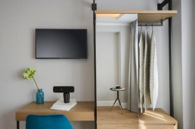 Camerele de la The Artist Athens au baie privată, dotată cu duș și articole de toaletă gratuite, și vedere la oraș. De asemenea, toate camerele de la cazare sunt prevăzute cu TV cu ecran plat și uscător de păr.