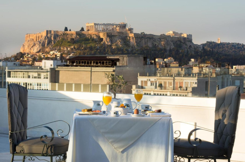 Guests can start their day with an American breakfast served daily at the hotel's rooftop Olive Garden Restaurant, where they can also enjoy Greek and Mediterranean dishes along with a stunning panorama of the Acropolis, the Lycabettus and the city beyond. La Brasserie Café Restaurant proposes light Mediterranean dishes for lunch or dinner.