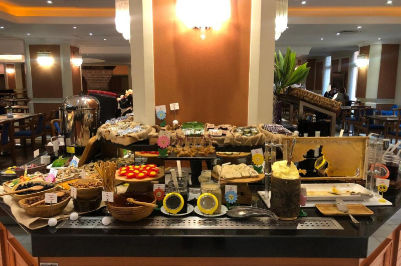 Restaurantul à la carte, prevăzut cu terasă la soare, servește preparate internaționale și mancăruri regionale turcești. De asemenea, hotelul are si un bar la piscină, care oferă băuturi. Oaspeții pot savura o varietate de gustări și băuturi, iar holul hotelului găzduiește o cafenea Starbucks.