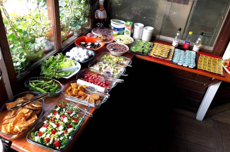 Există diverse locuri unde se poate lua masa: un restaurant, o sală de mese și o cafenea. Un mic dejun delicios dă energie pentru întreaga zi.