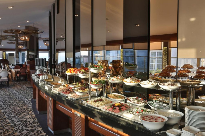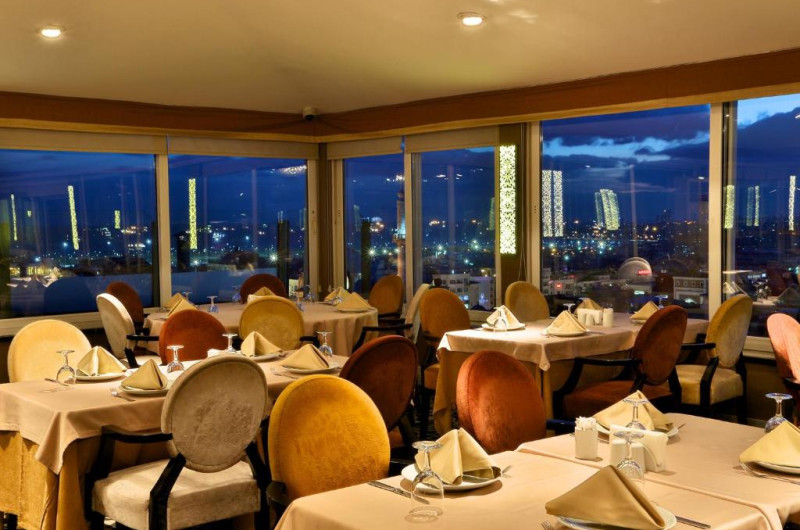 Restaurantul Panorama serveste preparate din bucătăria internatională si oferă vedere la Bosfor si la centrul vechi al orașului Istanbul. In fiecare dimineată este disponibil un mic dejun bogat tip bufet.