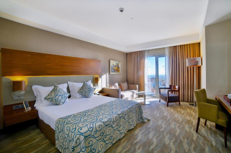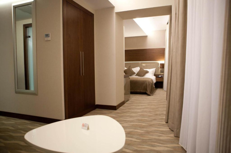 Fiecare cameră confortabilă de la Innova are pat foarte lung, decor elegant și mobilier modern. Toate unitățile de cazare sunt dotate cu aer condiționat și TV LED.