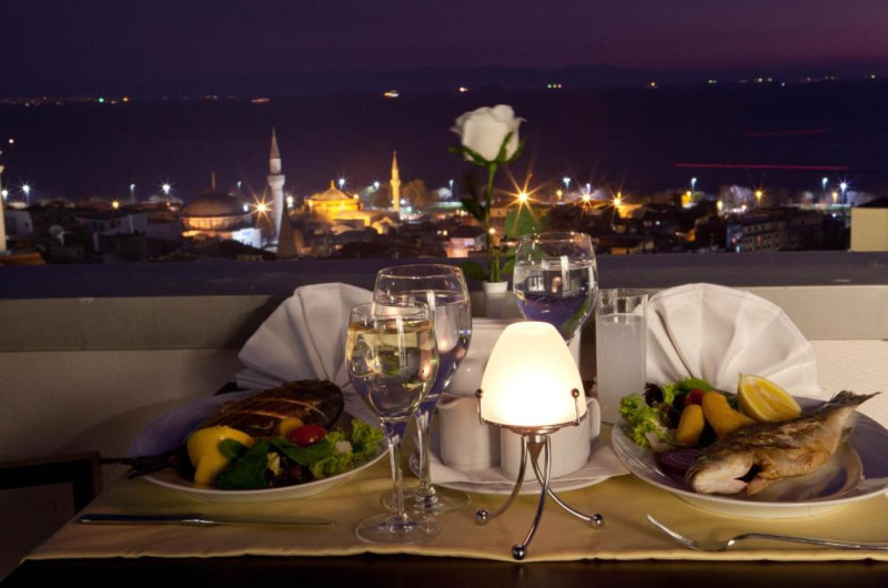 Oaspeții pot să savureze micul dejun tip bufet bogat dimineața. Mesele sunt servite la restaurantul à la carte Revan. Mey Lounge oferă băuturi. Terasa de pe acoperiș are vedere frumoasă la Marea Marmara.