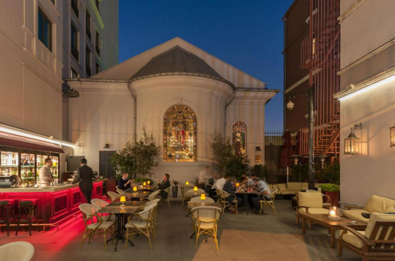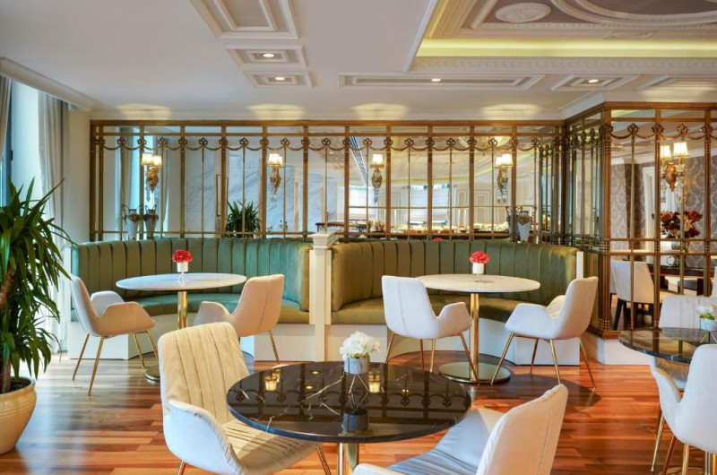 Café Royal oferă gustări delicioase și băuturi, cu vedere la Cornul de Aur. Restaurantul Chapelle are o atmosferă pariziană și servește mese de cină cu preparate internaționale. Samdan13 este unul dintre cele mai apreciate restaurante gourmet din Istanbul.