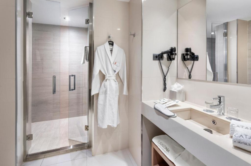 Decorate in tonuri neutre, camerele au mobilier modern și sunt dotate cu un smart TV cu ecran plat, dotat cu aplicația Chromecast. Baia privată include un uscător de păr. Hotelul Catalonia Plaza Mayor oferă un mic dejun tip bufet, disponibil pană la ora 12:00 in weekend.