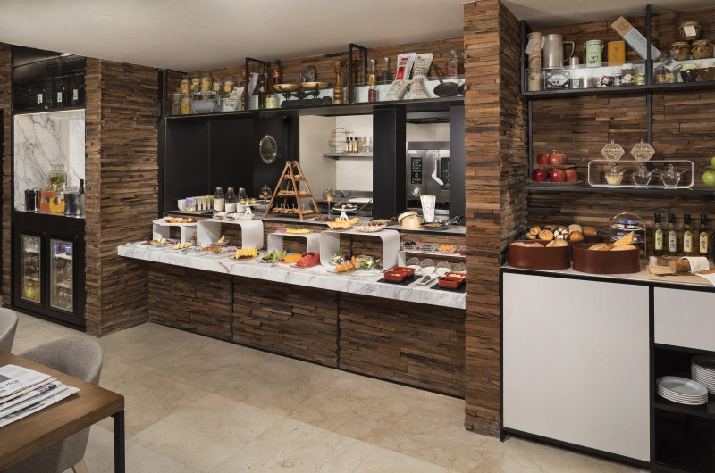 Restaurantul lor Mosaico și Barul Bribone: Ca un mozaic, restaurantul creează o imagine a aromelor irezistibile cu cele mai bune rețete din fiecare tradiție gastronomică mediteraneană, iar zona de bar servește gustări și băuturi ușoare, dar sofisticate. De asemenea, oaspeții se pot bucura de un mic dejun tip bufet consistent. Cafeaua gratuită este oferită dimineața devreme, intre orele 05:00 și 07:00. Există, de asemenea, un bar integrat in recepție și un room service 24 de ore pe zi.