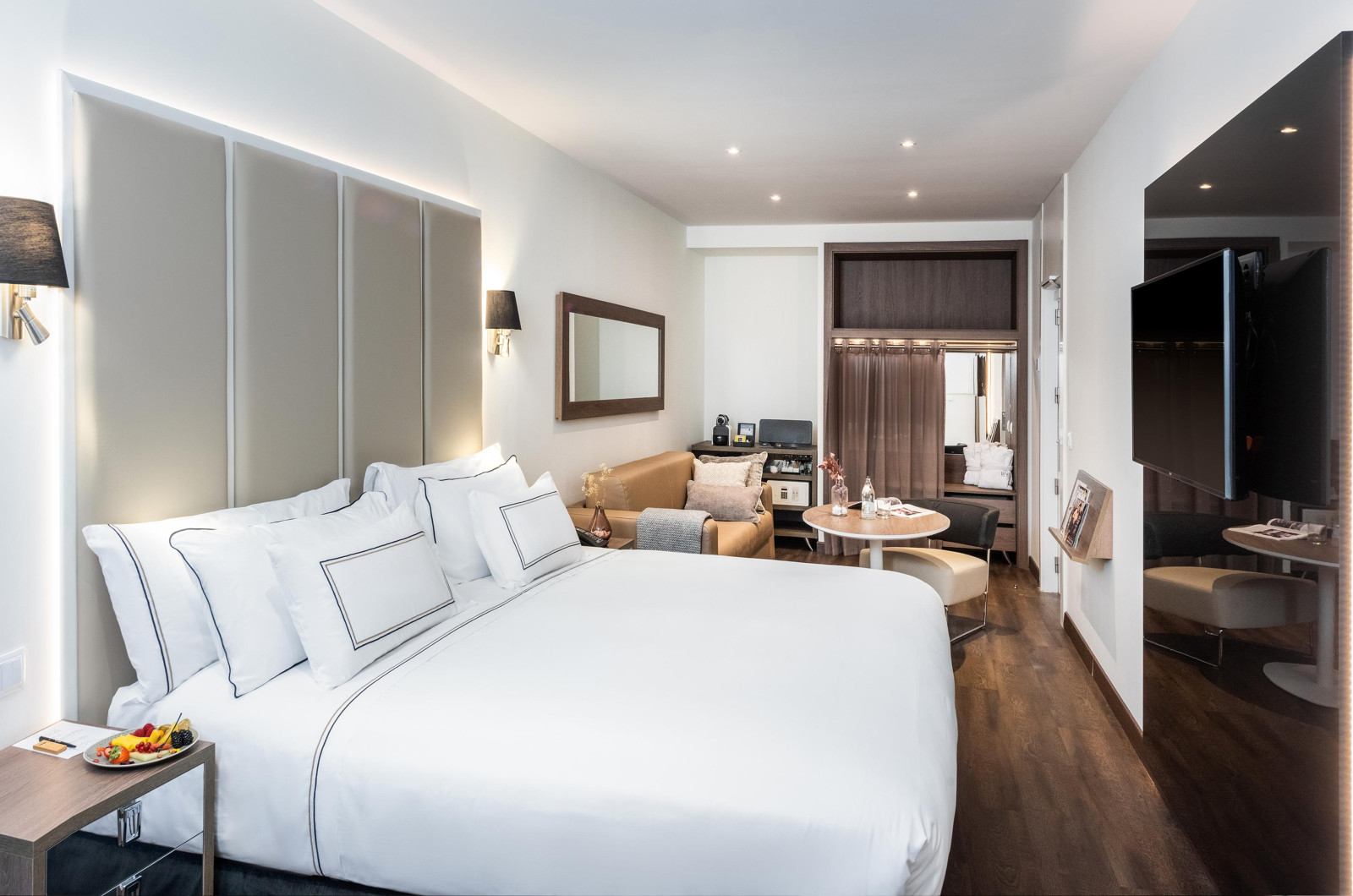 Camerele sale confortabile, cu aer condiționat de la Melia Madrid Serrano au decor modern și includ TV cu ecran plat cu canale prin satelit, meniu de perne și WiFi, impreună cu baie privată și articole de toaletă premium.